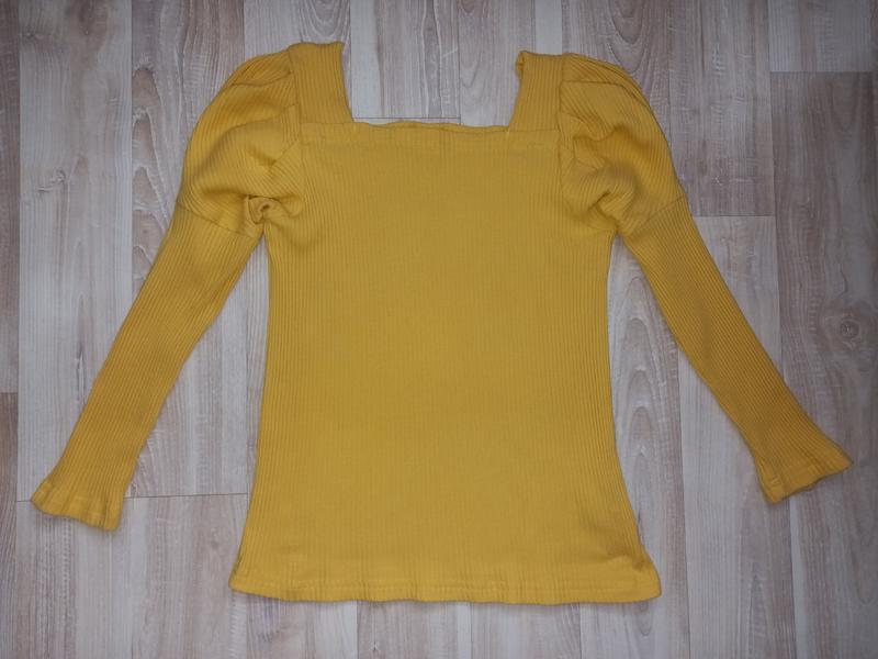 Кофточка в рубчик с волнами ткань хорошо тянется .по плотности как реглан Бренд Shein на 9-10л Замеры плечи 26 пог32 длина48 рукав45 замер с воланом. состояние очень хорошее. один нюанс на локте на фото показано возврата нет