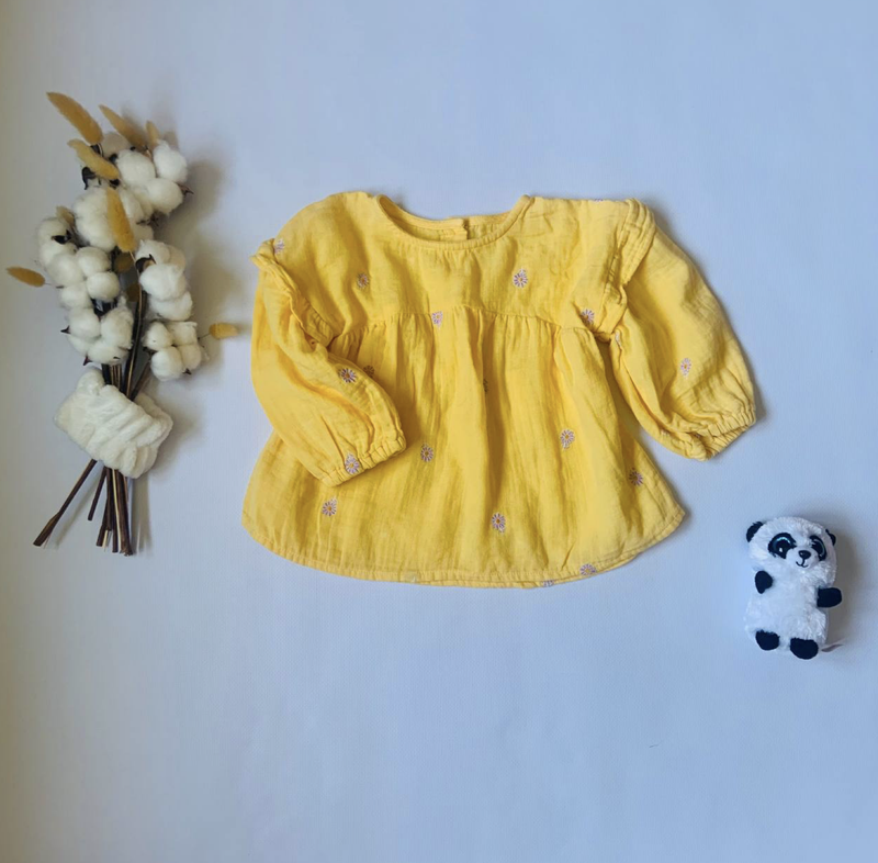 🌼 Солнечная муслиновая блуза для девочки 1.5 – 2 лет 🌼 Эта нежная блузочка - настоящее воплощение летнего тепла и уюта! Изготовлена из чрезвычайно мягкого муслина, она бережно окутывает кожу малыша, даря комфорт в любое время дня. Насыщенный желтый цвет поднимает настроение, а мелкая вышивка добавляет нежности и утонченности. Перчатки-фонарики с легкими собраниями выглядят очень мило и удобно в носке. 💛 Возраст: 1.5–2 года 💛 Ткань: 100% муслин (дышащий, идеальный для чувствительной кожи) 💛 Стиль: повседневный или праздничный образ 💛 Застежка: легкая одеваемость через голову