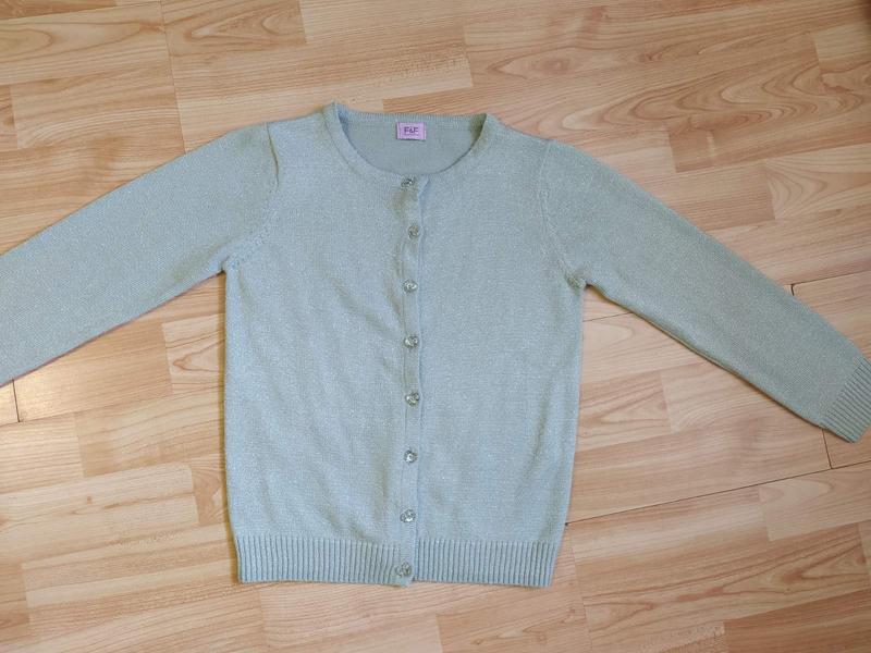 Продам дуже гарну кофтинку на вік 5-8 років. Колір універсальний підійде до будь якого образу. Тканина оздоблена люрексом і гудзики в формі сердечок роблять її надзвичайно гарною. Вашій донечці обо"язково сподобається.Дир, плям, катунців немає. Орієнтуйтесь на заміри. Довжина 45-46 см. Ширина під пахвами 36 см. Плечі 29 см. Рукавчик 44 см. Обміну і повернення немає, задавайте питання всім відповім. Оплата на картку Приватбанку. Доставка УП,НП оплата при отриманні.