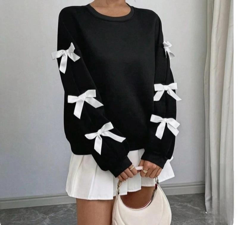 В наличии НОВИНКА Стильный свитшот, украшенный очень трендовыми в этом сезоне бантиками 🎀 Ткань турецкая двухнитка качества пенье КАЧЕСТВО СУПЕР! замеры:дл. свитшота/пог/рукав от горловины/от плеча 134-45/44/60/43 140-47/45/60/44 146-50/48/62/48 152-53/50/65/50 158-55/51/67/51 164-56/52/72/52 +-2 см 134-продано 140-продано 146-1шт