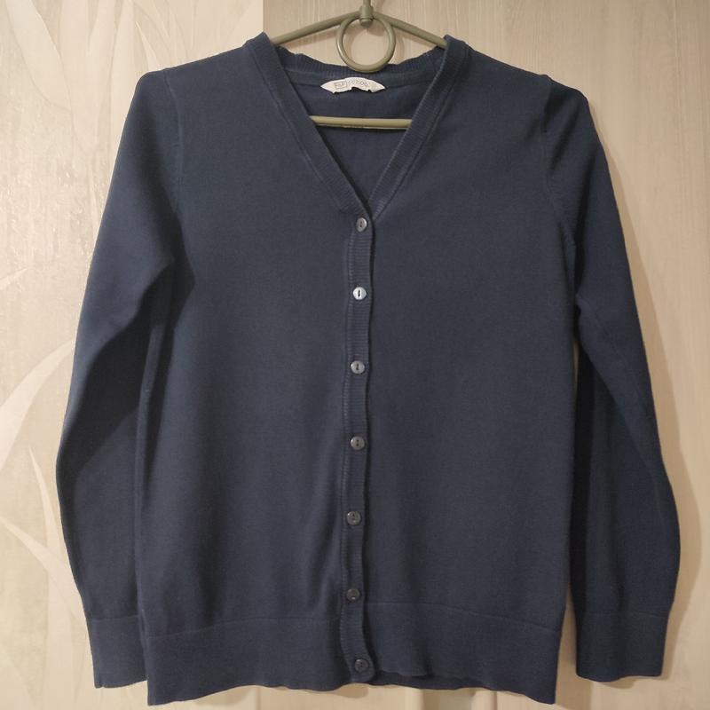 Детская темно синяя кофта на девочку 9-10 лет, одежда для школьника, в школу Кофта на гудзиках, трикотаж + поліестер В хорошем состоянии