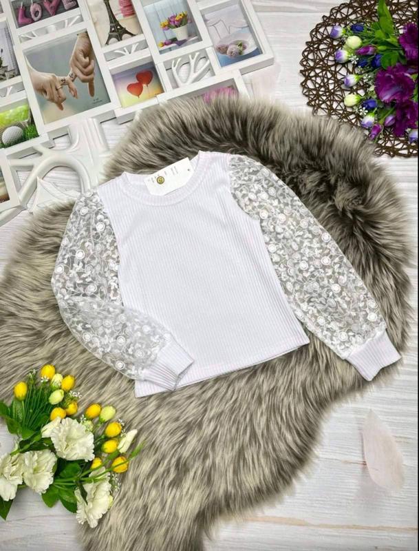 кофточка ткань рубчик+кружево на сетке р128,дл.к39,пог32,рук.от плеча46