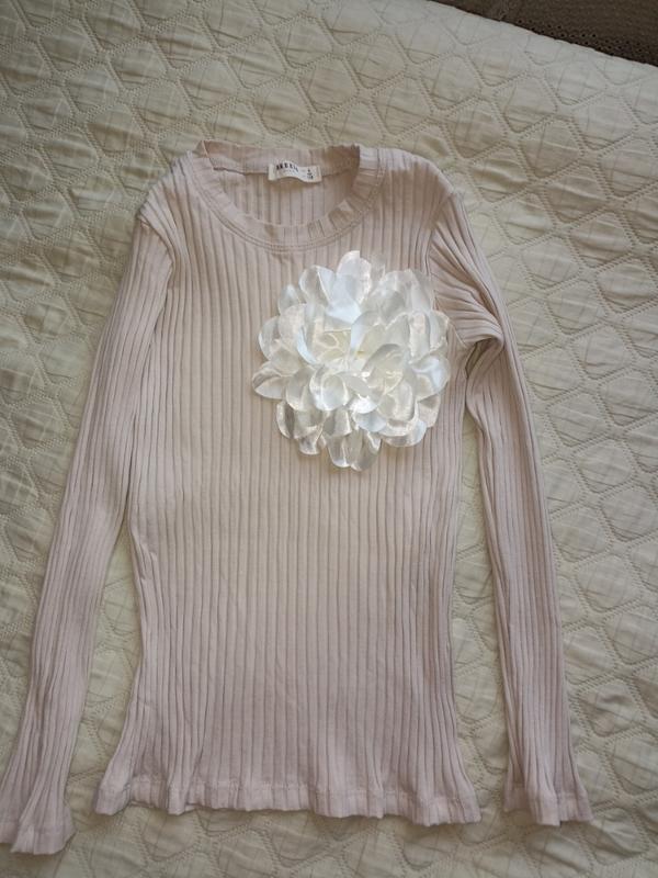 Кофточка в идеальном состоянии. Будет на возраст 8-10 лет. Цвет светлее, чем на фото. Тканина тягнеться. Замеры: длина по спине 49 см, плечи 26 см полуобхват груди 32, низу 32, еще тянется. Рукав от плеча 45 см