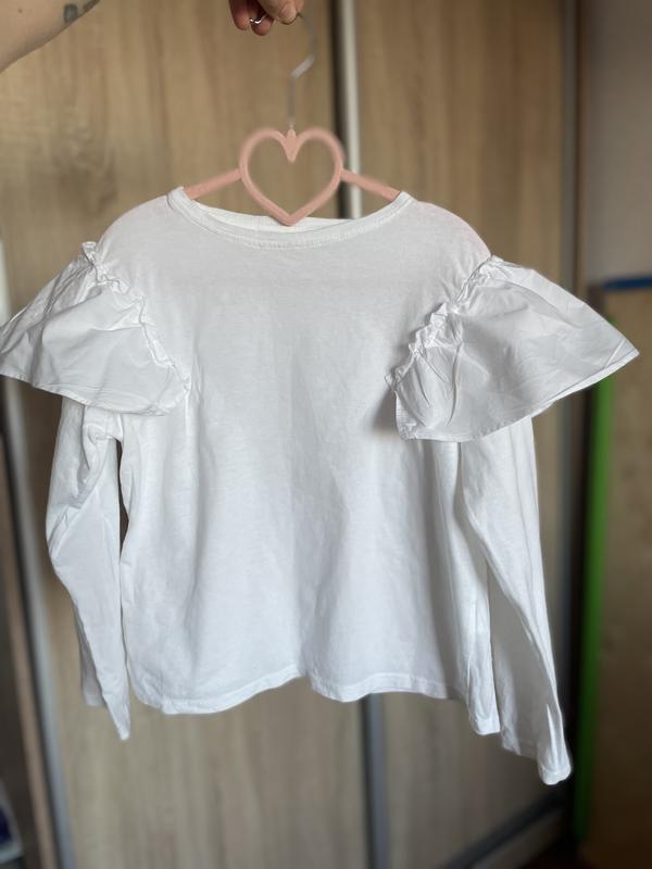 Блуза з довгим рукавом та воланами, в ідеальному стані, одягалась раз. Матеріал 100% бавовна.