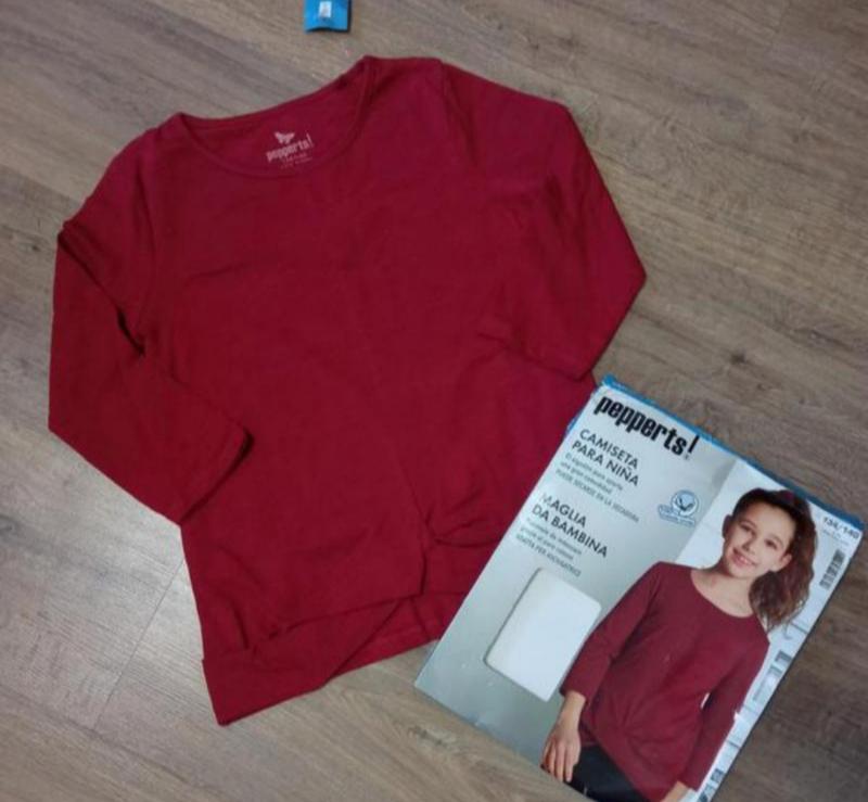 Очень красивый и яркий кофта на девочку от брендового производителя Pepperts.Цвет бордовый.Размер 134/140 на 7-8лет. длина -50см. рукав четверть-32см. дпг.37см.
