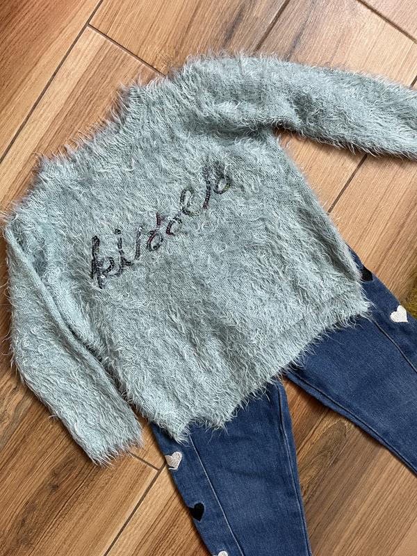 Светр теплий, мʼякий, подовжений зад, колір бірюзово сірий, розмір 104. Довжина 33 см, зад 35 см Ширина 33 см Рукав 37 см