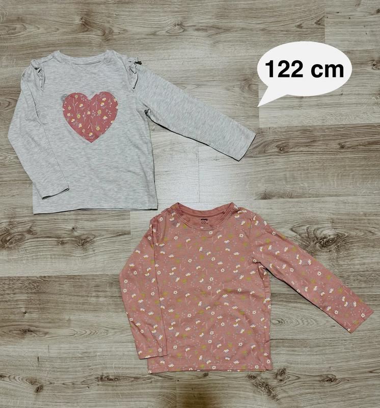 Набір з 2-х лонгслів для дівчинки 👧🌸ЦІНА вказана на за дві одиниці . Розмір: 122 (7 років) Стан: гарний, без плям і дефектів • Сірий лонгслів з принтом у вигляді рожевого серця з квіточками 🌺 • Рожевий лонгслів у білий квітковий принт 🌼 М’яка бавовна, приємні до тіла, зручні для щоденного носіння.