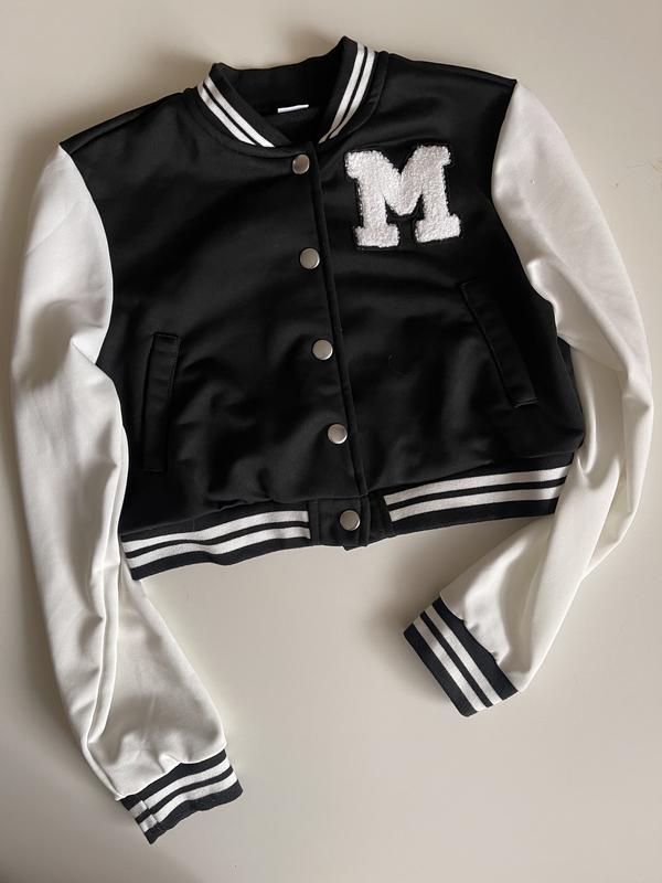 Трендовий трикотажний бомбер без підкладки. З карманами. Застібка - кнопки. В ідеальному стані . Розмір 12-13 років але по факту маломірить 9-11 років . Заміри довжина - 41см , пог - 45 см , довжина рукава від плеча - 68 см