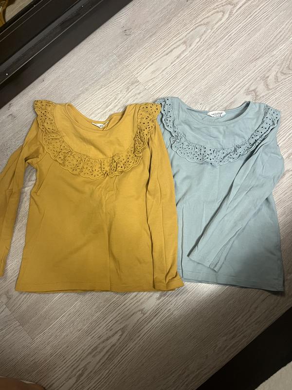 Заміри на фото, в ідеалі , легка дихаюча тканина (бавовна ) не кашлатиться . На 5-6 років . Ціна за 2 шт