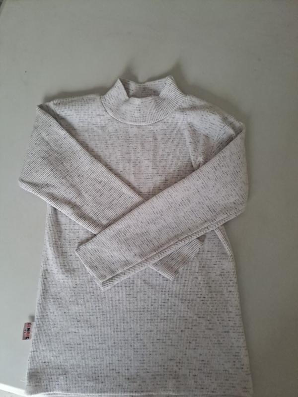 Гольфик в рубчик с длинными рукавами.Модель приталенного кроя, подходит для ношения как самостоятельно, так и под жилетку или свитер. Цвет – светло-серый с тонкими темными вкраплениями.Подходит как для мальчиков так и для девочек.Не заменимая вещь в школу (садочек) на прохладную погоду. Сверху чуточку есть напыление ангорки. Он новый (не угадал с размером) пишет на 11 лет, но маломерит, тем более ориентировку на замеры..Рукав 38 см, длина от плеча 48 см,плечи 32 см.Ткань чуточку тянется.
