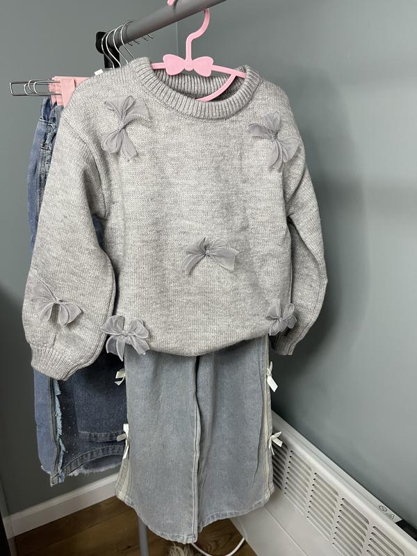 Светр з бантиками 🎀 Склад: бавовняний трикотаж 🧵 У наявності в 2-х кольорах- сірий та бежево-коричневий Приємна до тіла , мʼягенька, тепла та зручна Розміри 100 110 130 Повноміри , але додатково можу зняти заміри