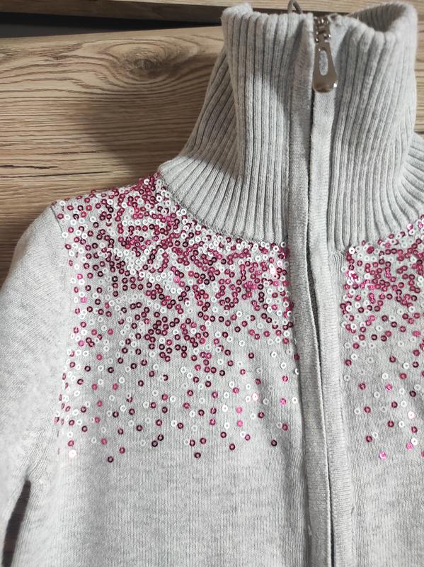 очень практичная кофточка. наша любимая вещь, потому что замок позволяет в теплом помещении расте растекнуть. дефектов нет катышков тоже. размер 104 но точно болеемерит. мы носили до 122р.Есть еще лосинки на небольшом флисе флисе флисе пишите с радостью ответную.