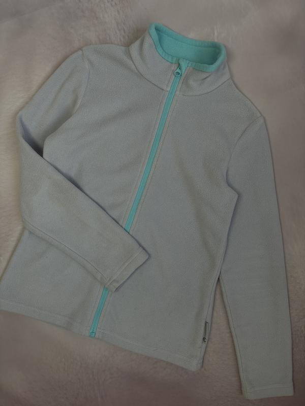 Флісова кофта на дівчинку в сіро-блакитному кольорі, можна і на хлопчика, колір нейтральний, стан ідеальний, розмір бірки - 134/140 Заміри: Довжина - 51,5 см Ширина під пахвами - 39 см Шир плечей від шва до шва - 33 см Довжина рукава від плечового шва - 50 см