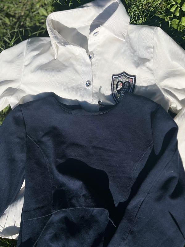 У комплекті іде сорочка під низ а наверх кофта дуже стильно виглядає на дитині всі заміри на фото підійде на ріст 115 125 сантиметрів Довжина рукава від плеча 42 сантиметри ширина під пахвами 35 сантиметрів довжина синьої кофтинки 48 сантиметрів позаду