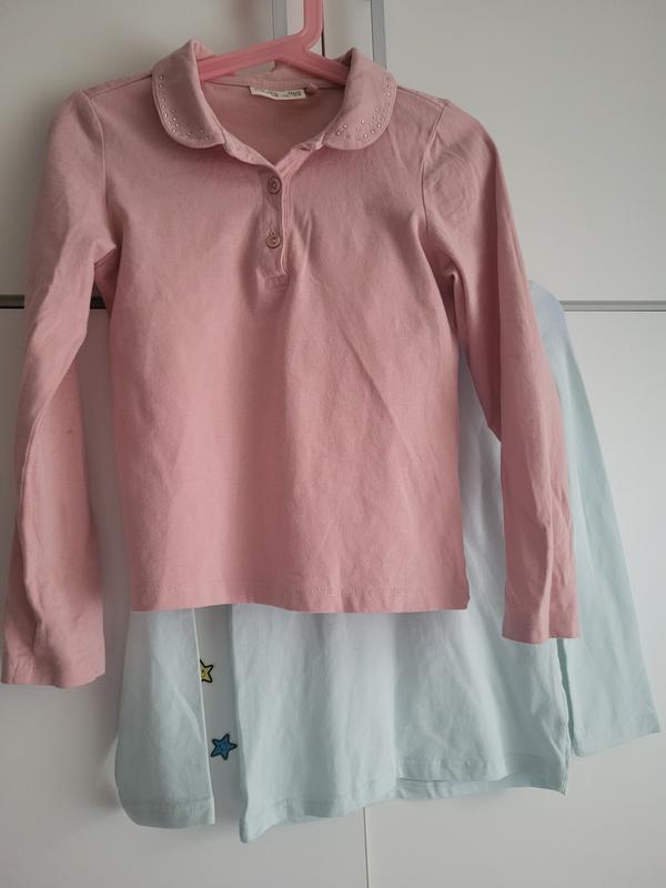 Дві трикотажні кофточки для дівчинки, прикрашені камінцями. Рожева - вдягалася пару разів, блакитний гольф - абсолютно новий. За все 190 грн