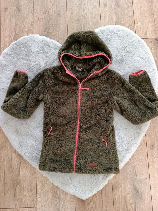 Теплая кофта для девочки на рост 152. Имеет карманы на застежке, глубокий капюшон, приятный к телу.