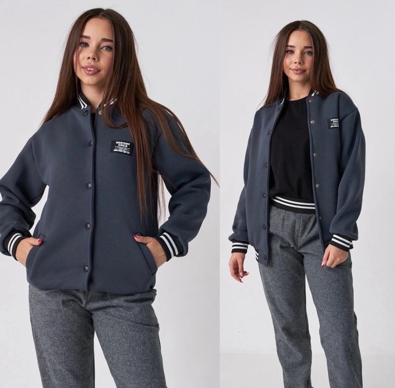 Теплий бомбер Крій оверсайз тканина турецька трьохнитка пенʼє на флісі Дуже теплий та стильний Є кишені, на кнопках ЯКІСТЬ ЧУДОВА!!! РЕКОМЕНДУЮ!!! 140-1шт 146-1шт 152-1шт 158-1шт довжина/пог/рукав від горловини 140/57/45/57 146/59/47/58 158/63/49/64 152/61/48/60 164/67/50/67
