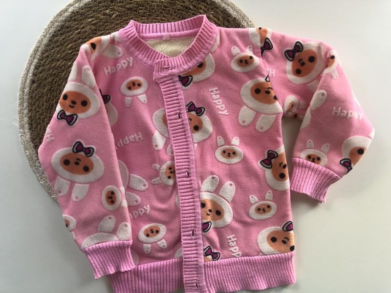 Мила й тепла кофтинка для дівчинки з ніжного флісового матеріалу. Заміри: Довжина рукава 31см, плечі 25см, пог 28см, довжина 36см