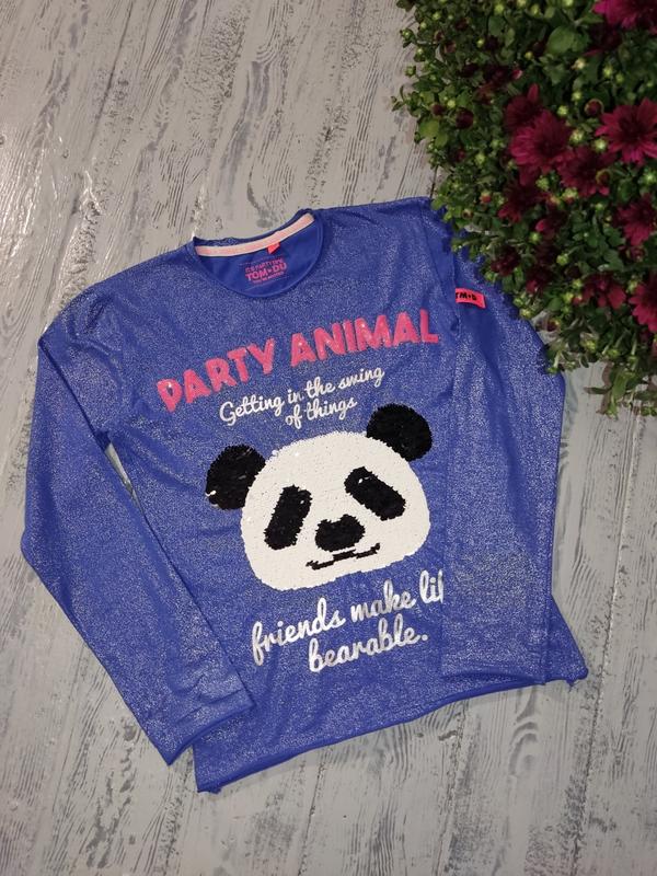 в идеальном состоянии. хорошее качество, пандочка идет в пайетку, можно менять цвет, сама кофточка идет в мелкую молнию. хорошенькая. чуточку тянется. долж.-51 п.о.г.-38 плечи-34 рукав от плеча -49