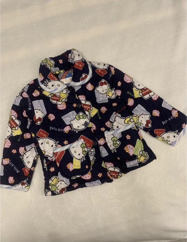 Тепла толстовка Hello Kitty для дівчинки 3-4 років, утеплене, на синтапоні Колір синій, різнобарвний Довжина 47 см Довжина рукава від плечового шва 39 см, від комірової зони 50 см Плече 34 см Напівобхват грудей 40 см Напівобхват талії 40 см Напівобхват низу 43 см Застібка — ґудзики Склад: 100% котон, щільний утеплювач, підкладка поліестер