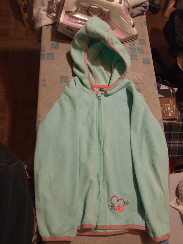 флиска с капюшоном для девочек 4 лет в очень красивом состоянии бирюзового цвета