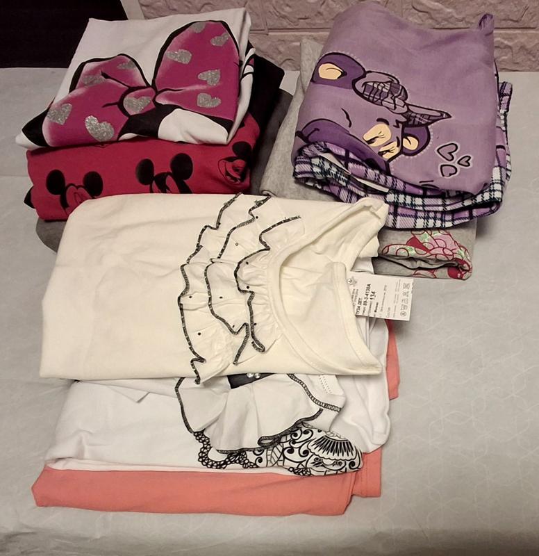 Пакет із 10 нових речей з бірками файної якості фабричного пошива. Розпродаж із-за ліквідації складу. Розміри від 128 до 146. Перелік речей: піжама тепла з начосом Мінні, піжама без начосу фіолетова, три святкові ошатні блузи білого і молочного кольорів, белий реглан Мінні, костюм - двійка двунитка, мастерка з каптуром градієнт Pepperts. Окремо виміри не роблю.