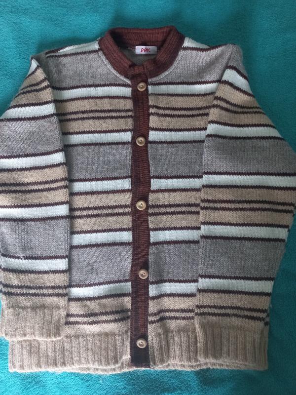 Кофта украинского производителя. Хорошее качество! Хорошее состояние! Удавали несколько раз. В составе шерсть. Теплая и комфортная. На гудзиках. Подойдет, как мальчику, так и девочке.