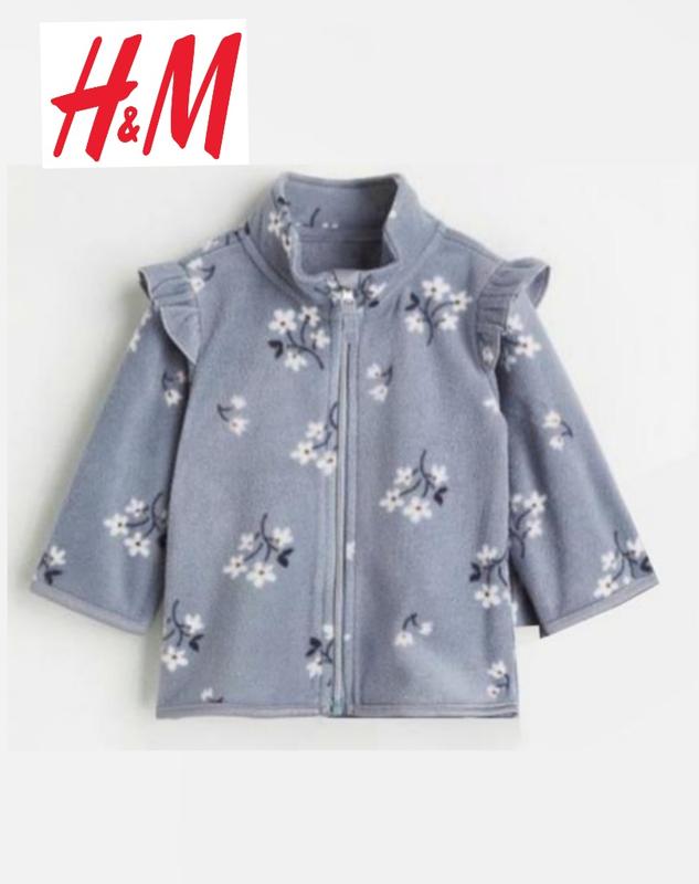 Классная флисовая кофта для девочки от шведского бренда H&M ✅ Размер 2роки / 92см Цвет светло-серый с цветочным принтом ✅ Состояние новой без дефектов! Замеры; Длина от плеча 37см Длина рукава 30см, плечо 6см Ширина в плечах 26см Ширина под рукавами 32см Толстовка из мягкого флиса предназначена для носки как в чистом виде, так и в качестве среднего утепления. Воротник стойка и молния спереди с защитой подбородка. Длинные рукава с рюшами на плечах. Эластичные окантовки на манжетах и внизу. Ткань - флис (100% полиэстер).