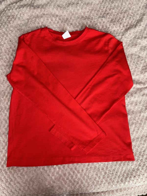 Дитячий лонгслів (дівчачий) 164 см / 13–14 років Яскравий червоний лонгслів із м’якої бавовняної тканини. Приємний до тіла, не парить і добре тягнеться. Ідеально підходить для школи, прогулянок або як базовий верх під светр чи жилетку. • Вік: 13–14 років • Розмір: 164 см (також підійде для жінок із маленьким розміром — XS або S) • Колір: насичений червоний • Фасон: прямий крій, довгий рукав, круглий виріз • Матеріал: бавовна