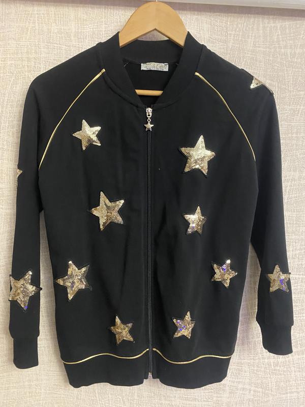 Супер кофточка-бомпер для дівчинки. Стильна, зручна, практична. Зірочки з паєток ефектно доповнюють та прикрашають.