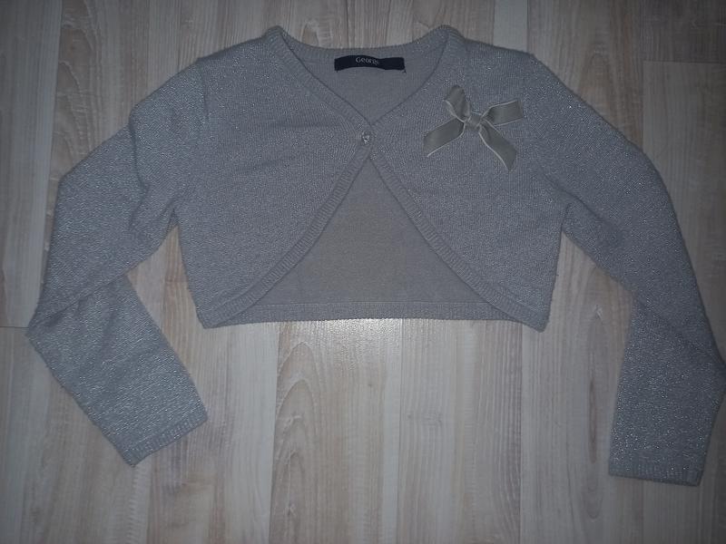 Серебристое болеро Бренд George на возраст 4- 5л замеры плечи 26 рукав 38 пог 32 длина спинка23 состояние отличное возврата нет