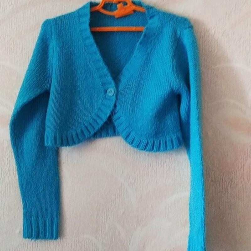 Теплая кофточка - болеро бирюзового цвета. Очень удобная и практичная. Длина -28 см., рукав-51 см.(можно подвернуть)