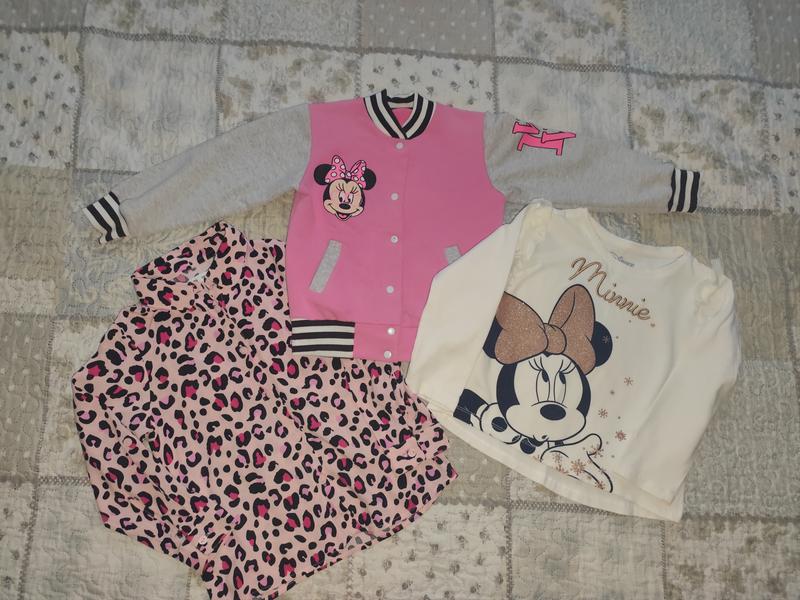Кофтинка, реглан і рубашечка в гарному стані, йдуть на розмір 98-104 ну взагалі ми носили і на зріст 92см було чудово. На останньому фото кофтинки для дому, йдуть у подарунок, також покладу у подарунок ще колготки Ціна вказана за все