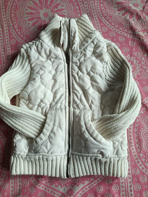Детская кофта трикотажная на молнии спереди стена, белого цвета с карманами,теплая.