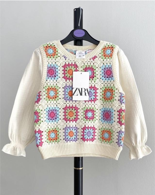 Оригінальна і дуже якісна кофтинка для маленької модниці Zara, Оригінал!Привезена з Іспанії ✔️Стильна кофтинка з імітацією багатошарового одягу, що зараз дуже актуально 👍 ✔️Приємна на дотик, неймовірно ніжна! ✔️Вʼязана гачком ✔️Рукава з ніжного мусліну ✔️Склад: 100%бавовна Розмір ✅ 3-4роки(на зріст 104) Заміри 👇 Довжина 38см Ширина 31см Рукав від плечового шва 36 а від горловини 42см 💳Ціна 680грн (на ціннику €25,95) № 5461