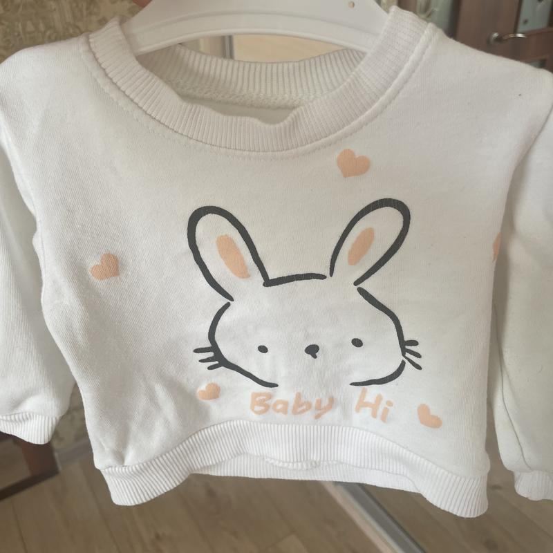 Дитяча кофта з принтом зайчика білого кольору 100% бавовна Розмір: 74 см ( 9-12 м)