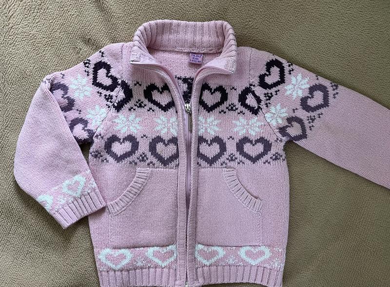 По бирке указано 3-4 года , по факту до 5 лет , полномер . Плотная вязка , теплая , удобная зимняя кофта .Цвет розовый