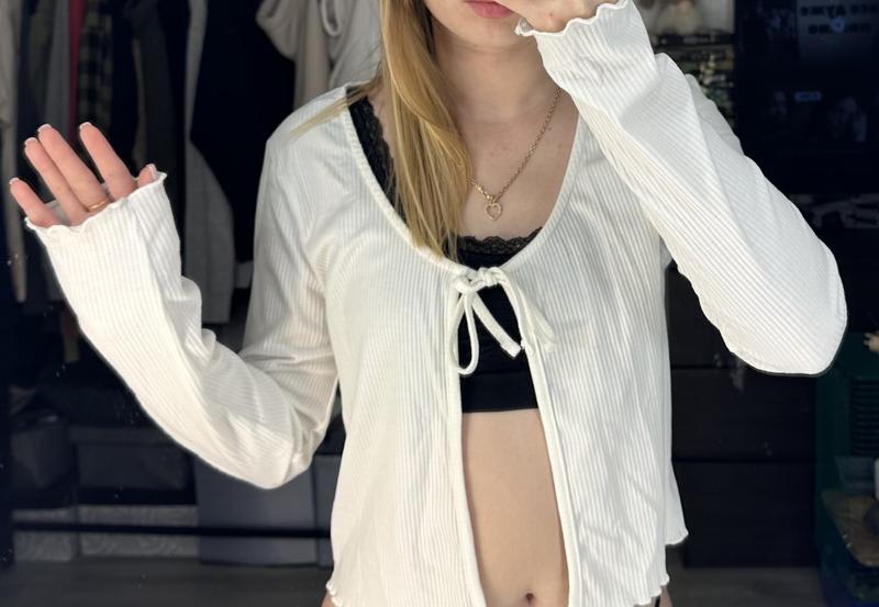 Кофтинка на завʼязках розмір хс/с краще одягати під топ чи майку
