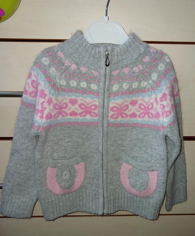 Теплая кофта на молнии, есть два карманчика. Декорировано рисунками. Кофта в идеальном состоянии, на фото все видно. 80% ангора 20% акрил Для садика будет как раз) Горло и ручки защищены манжетами-резинкой, приятная на ощупь.