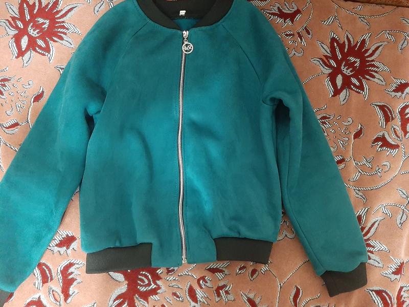 Бомбер замшевый (на флисе) для девочки. Подойдет на 134-140 г. Молния рабочая.