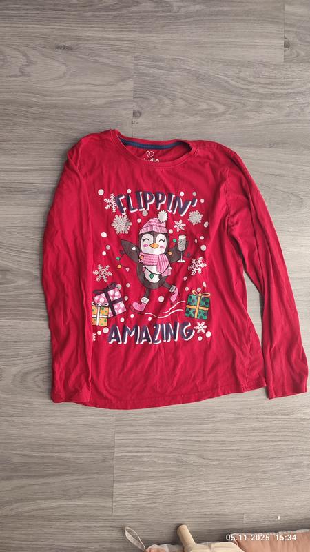 Праздничная кофта красного цвета с принтом пингвин но принт пошевелился размер от 8 до 10 лет