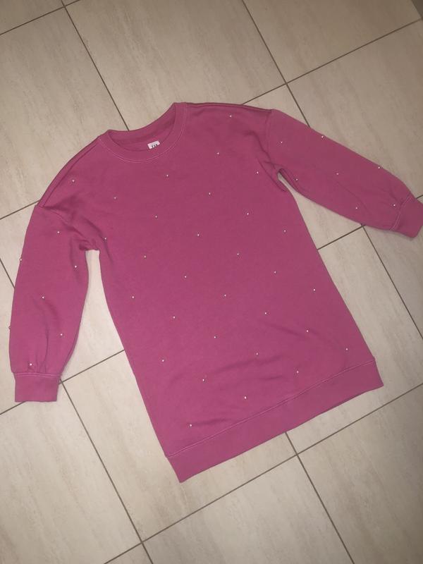 Мʼяка приємна туніка для дівчинки, перед та рукава оздоблені штучними перлинками .вказаний ріст 114-132 см , дивитись заміри .( оверсайз )