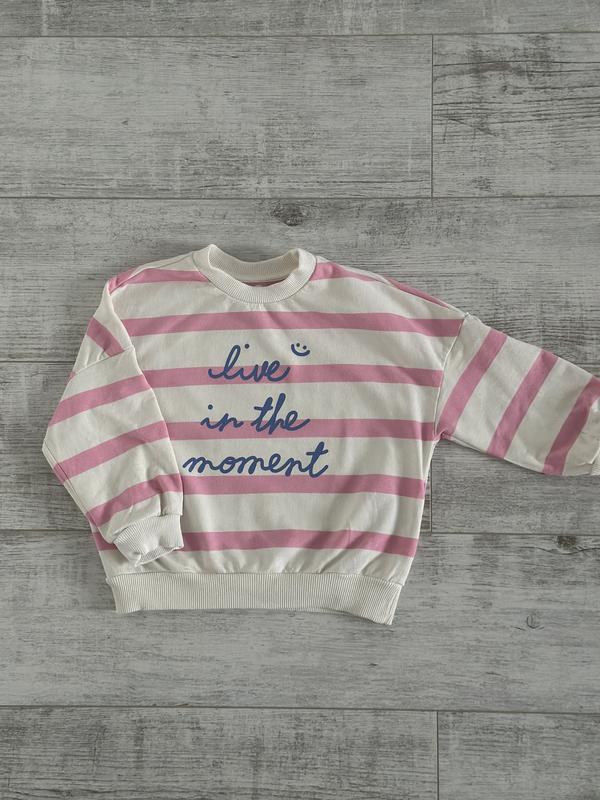 Наш світшот по стилю оверсайз, ріст 110 см((4/5 років) , одягали кілька разів і виросла .