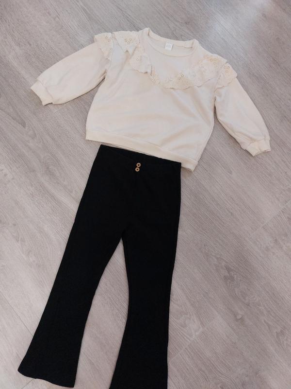 Стильная одежда для девочки 3-4 р. Одевали комплектом, очень красиво смотрится. Удобного кроя кофта и при этом праздничная. Брюки ко всему подойдут Состояние ИДЕАЛЬНЫЙ Кофта цвета нежно молочного