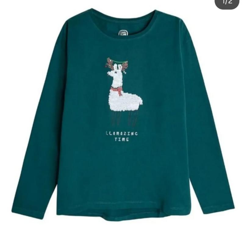 Стильный качественный фирменный лонгслив с рождественской ламой, пайетки переворачиваются.