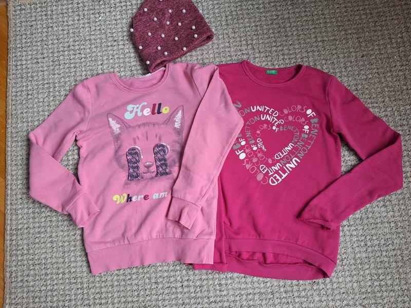 комплект одежды который состоит из двух свитеров шапки на флисе и спортивных штанов. комплект подойдет как для школы так и для дома или прогулок. можно как домашний костюмчик. нюансов нет в хорошем состоянии просто освобождаемым местом.