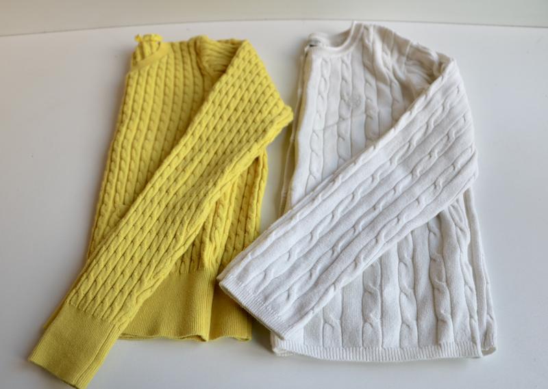 Продаю 2 замечательных кофточка на девочку в идеальном состоянии. Надевали по несколько раз каждую, поэтому как новые, без нюансов. Обе – классных британских брендов, очень качественные, натуральные материалы (не синтетика). Белая Hampton Republic - размер 122-128 см. Цвет не чисто белый, а молочный, шампань, очень красивый и благородный. Красивая в "язкая" косами. Замеры (есть на фото): - Длина 43 см - Ширина 37 см - Рукав от шии 52 см - рукав снизу 36 см Вторая кофточка - Next, яркая, лимонно-желтого цвета, размер по наборке 140 см (9-10 р), но немного маломерит, она почти такая же, как предыдущая (потому ориентируйтесь по замерам). Замеры: - Длина 41 см - Ширина 34 см - Рукав от ши 53 см - рукав по низу 39 см Цена за 2 кофточки - 280 грн. Пересилаю