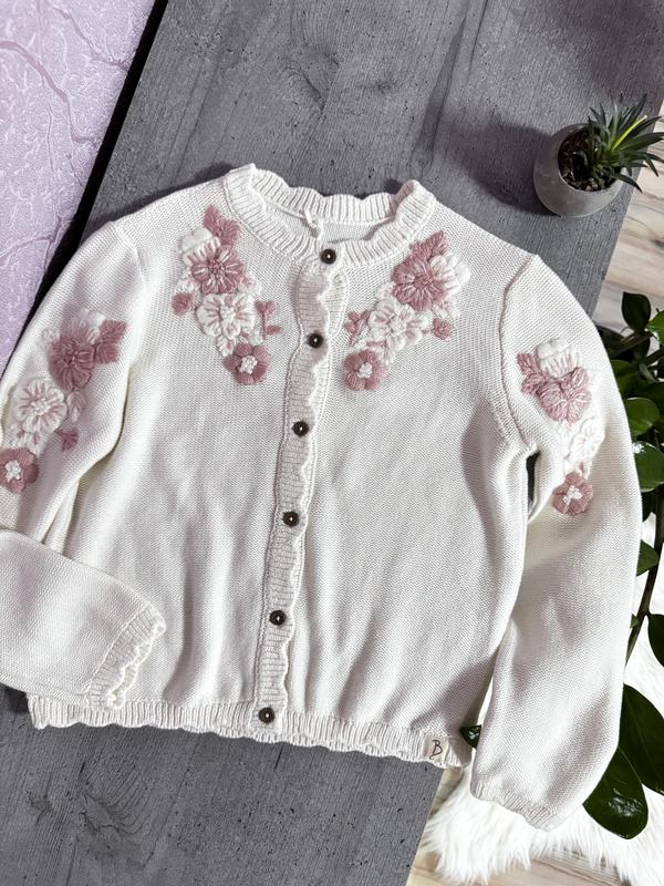 Вʼязаний Кардіган або кофта на дівчинку 122/128 см Вишиті квіточки ,стильна виглядає,підійде на кожен день і на виход Довжина 42,пог 37 ,рукав 47 Ціна 400 грн