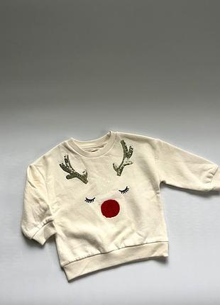 Кофтинка з новорічними мотивами від F&F, розмір 92(18-24 місяці) Утеплена флісом, колір молочний Нова, але без етикетки. Відправка укр та новою поштою,є безпечна оплата