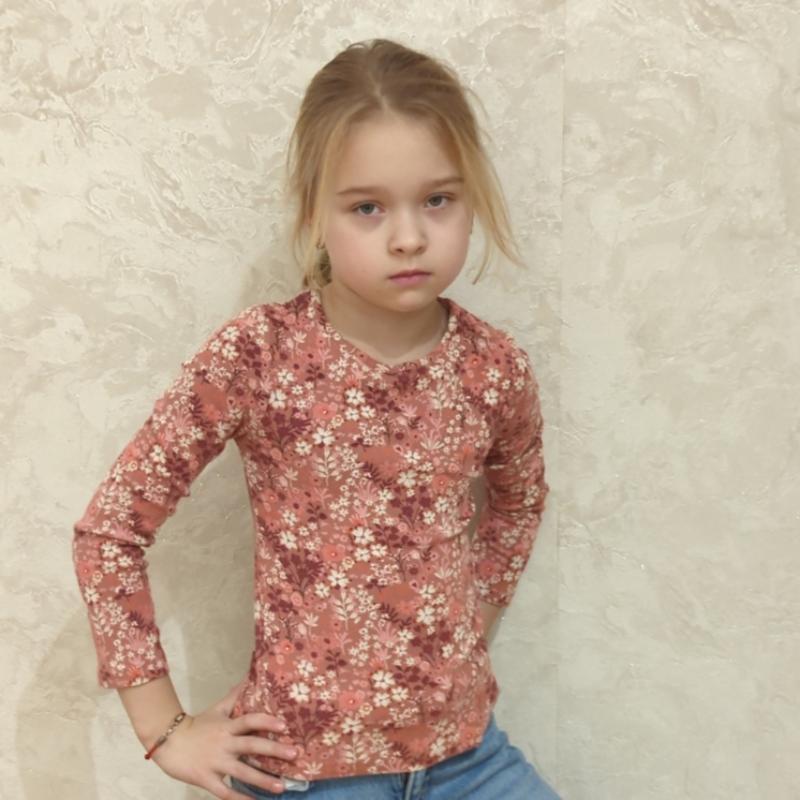 Ребристый топ с длинными рукавами и цветочным принтом цвета ржавчины